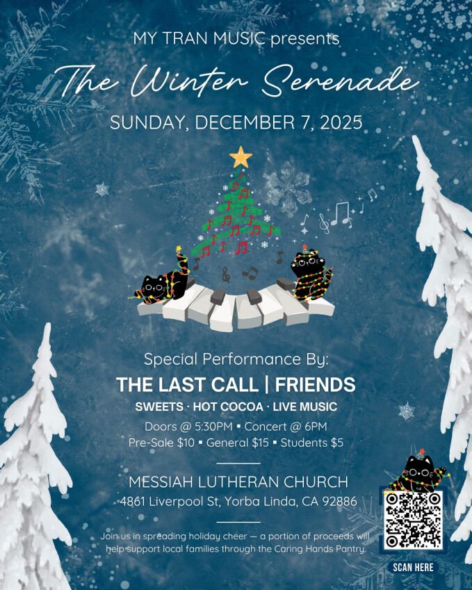 Come see My Tran, Messiah pianist in a special concert on Sunday, December 7, 6-8pm in the Worship Center.