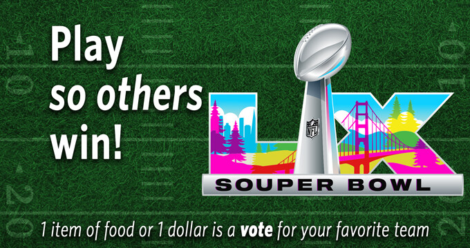 It's that time of year again! We play so others win. The "Soup"er Bowl games begin on Sunday, January 25 with the AFC & NFC Championship games. Each can of food or $1 count...